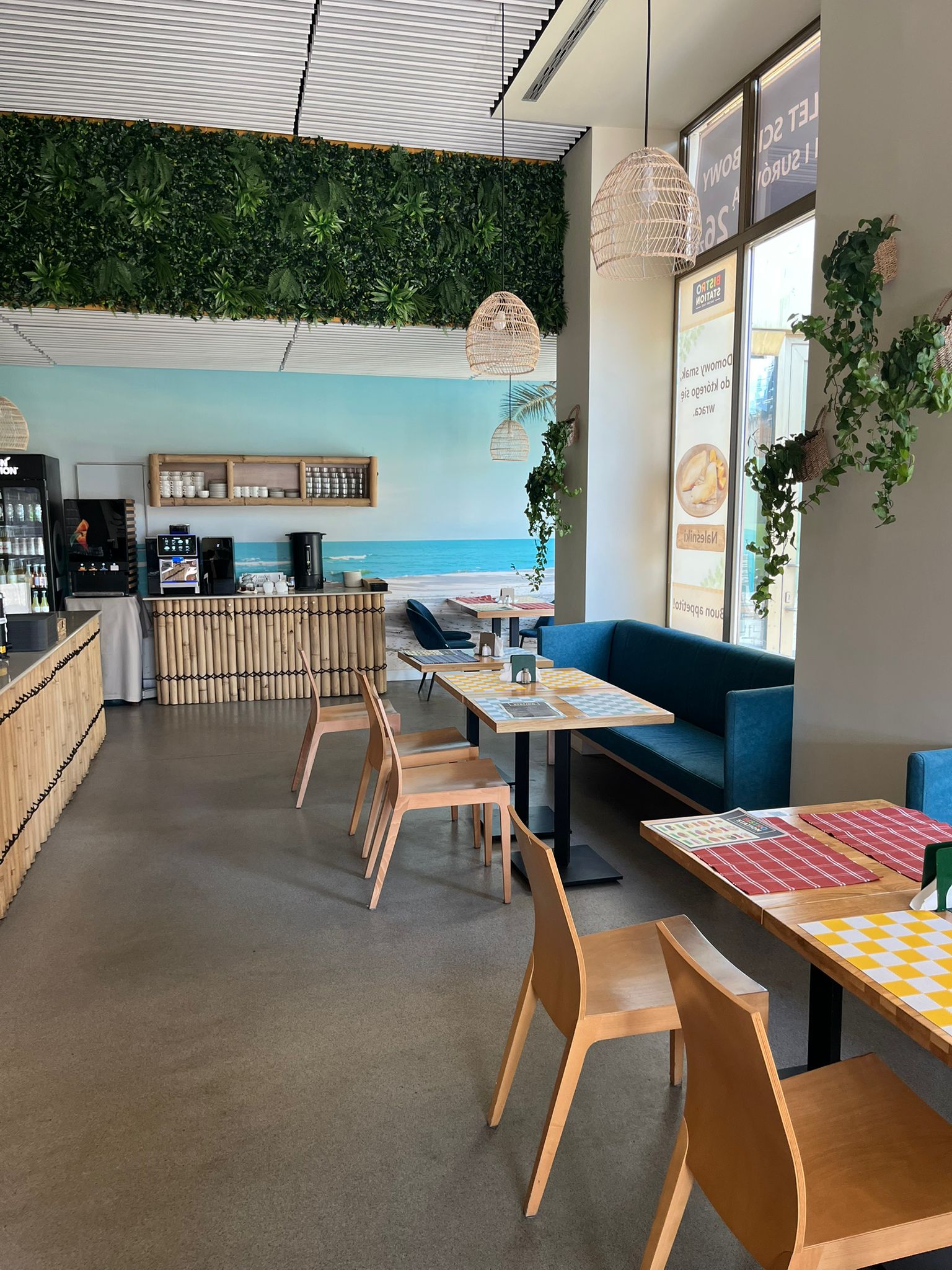 Kawiarnia Europejska, mieszcząca się w zabytkowym Hotelu Europejskiego, łączy przedwojenną elegancję z kameralnym klimatem. Jej wnętrze, utrzymane w stylu wiedeńskim, urzeka harmonią bieli, ciepłych beżów, czerwieni i złota. Elegancji dodają marmurowa posadzka oraz blaty stolików i kontuar wykonane z tego samego, szlachetnego kamienia. Szczególną ozdobą kawiarni są podświetlane witraże sufitowe przedstawiające motywy słońca i fantazyjnych kwiatów – dodają one wnętrzu wyjątkowego charakteru i artystycznego uroku. Stylowe detale, wysokie okna i miękkie fotele tworzą idealne tło do rozmów przy filiżance kawy. W menu znajdziesz aromatyczne kawy, liściaste herbaty oraz domowe wypieki, przygotowywane według tradycyjnych receptur. Na szczególną uwagę zasługują klasyczna W-Z oraz puszysty sernik. To doskonałe miejsce na spotkania towarzyskie, chwilę relaksu lub spokojny poranek z kawą.